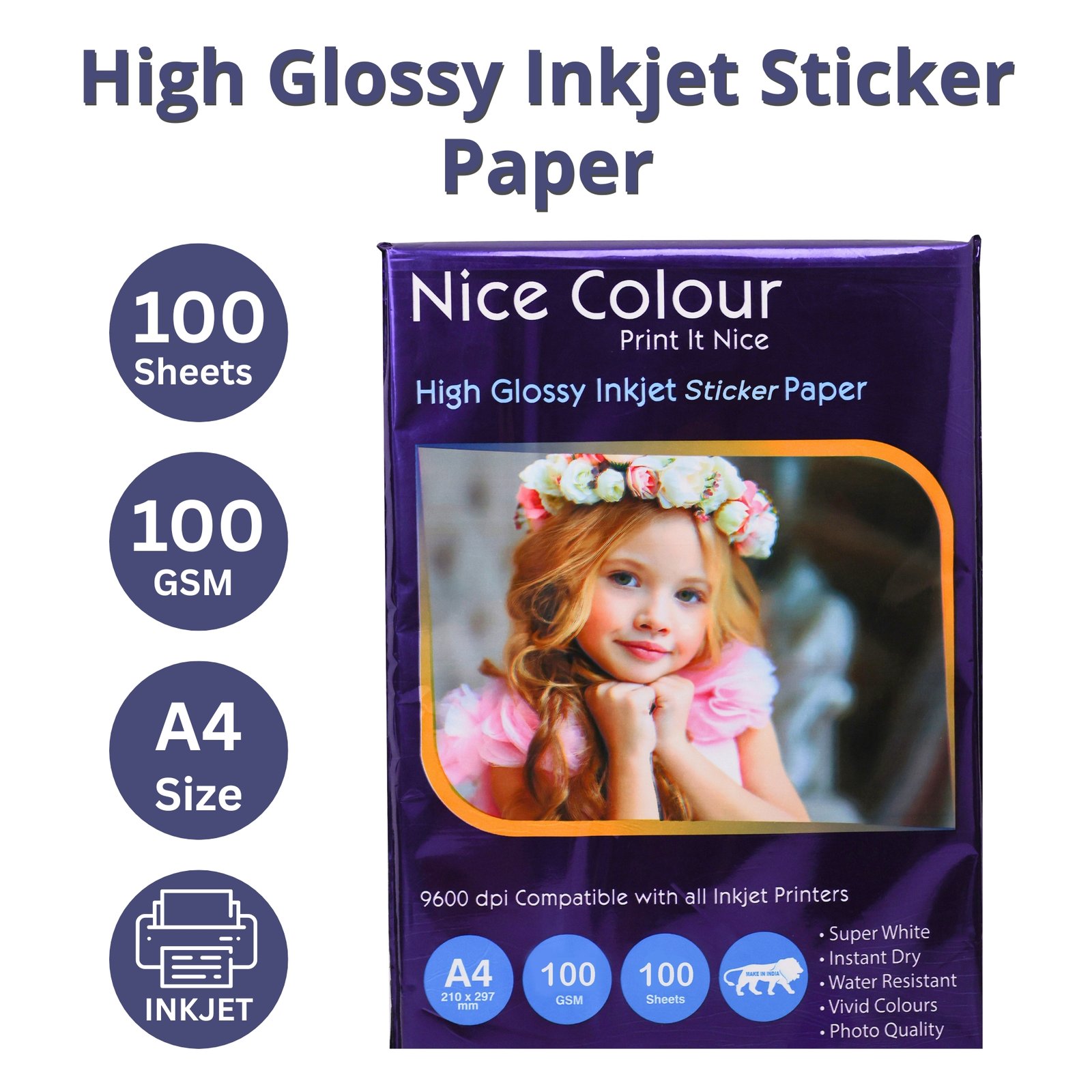 Key Features of Our High Glossy Inkjet Sticker Paper A4 100 GSM 100 Sheets