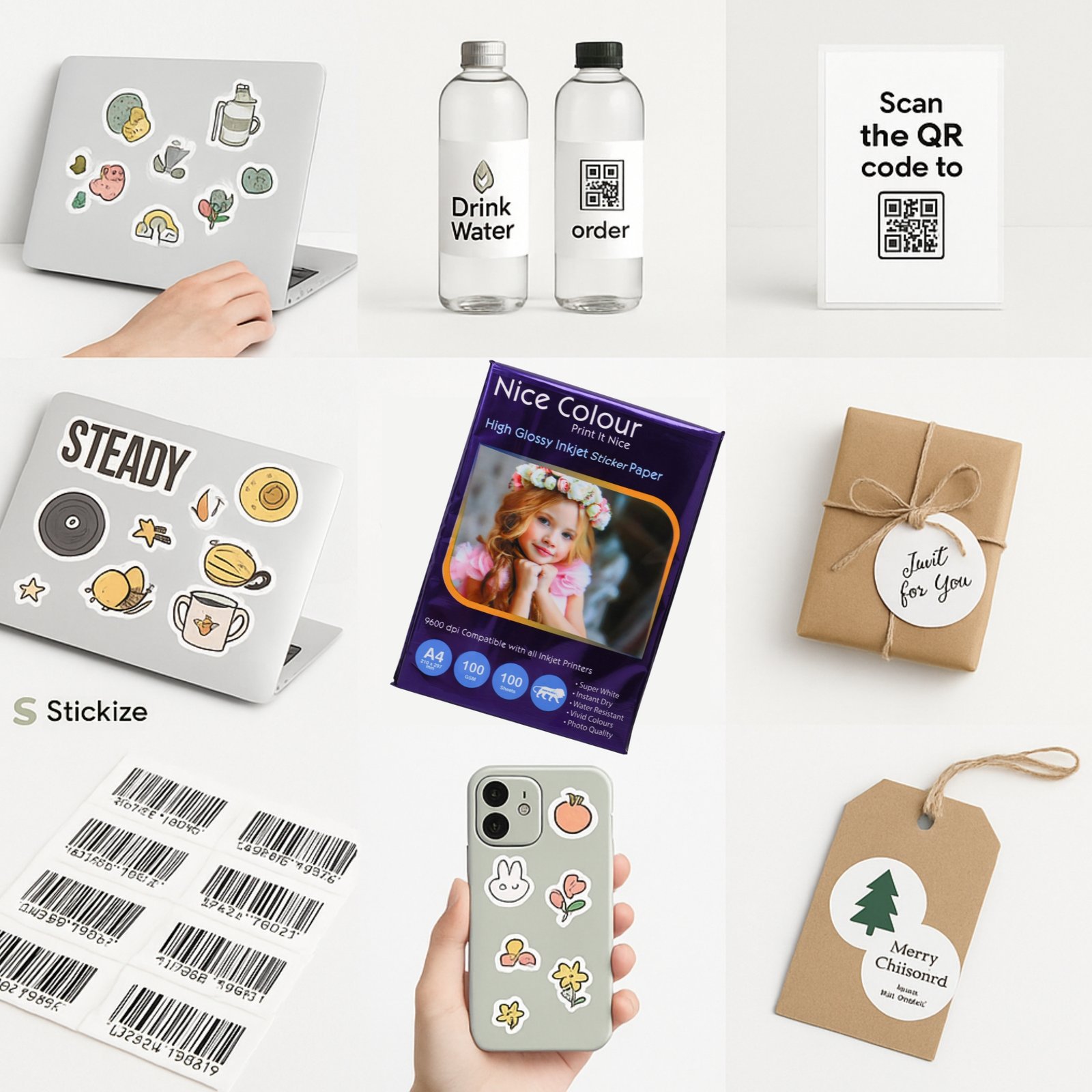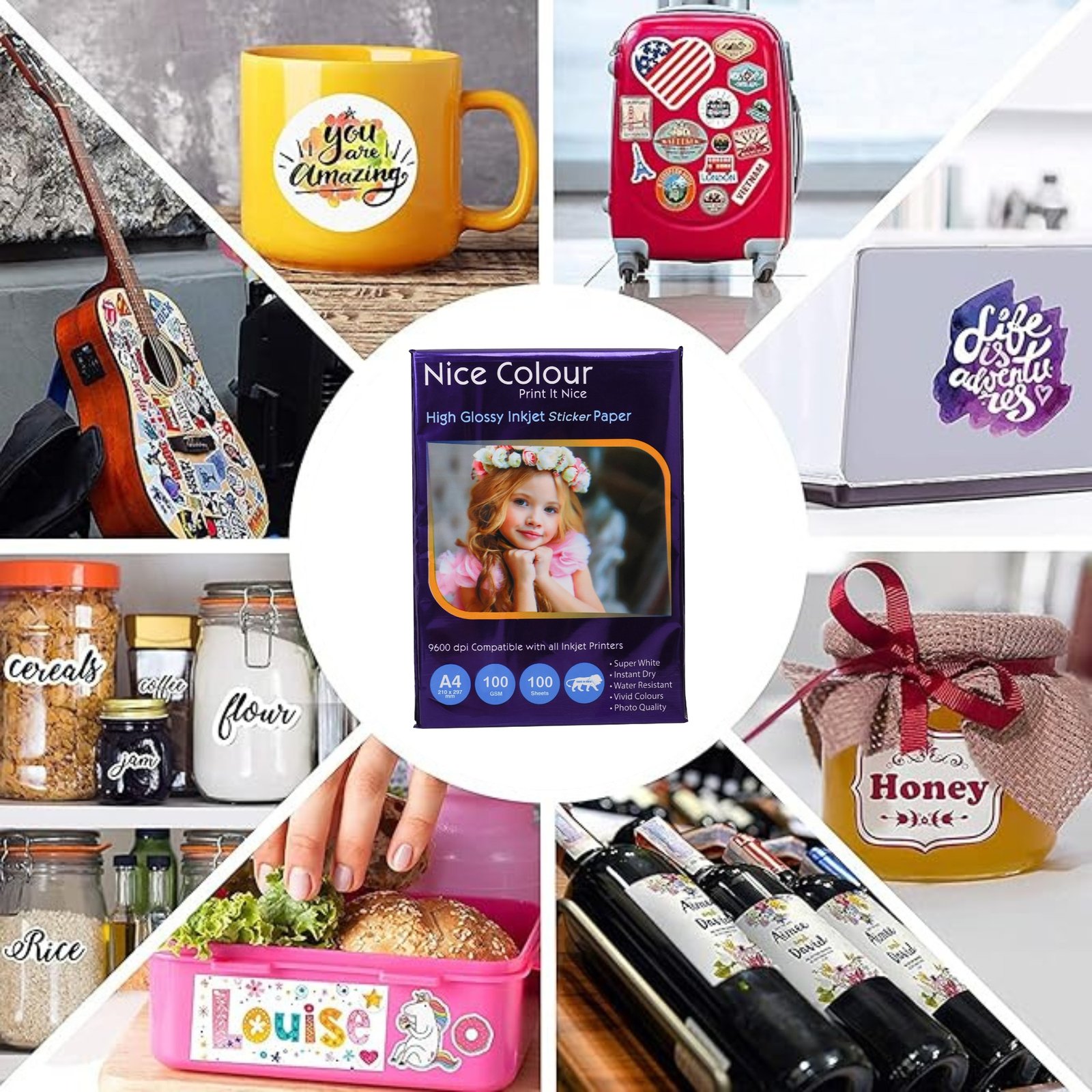 Looking to customize product packaging, organize files, create scrapbook designs, or print your own branded stickers? Our High Glossy Inkjet Sticker Paper A4 100 GSM 100 SheetsΒ makes it effortless. This paper is ideal for printing: